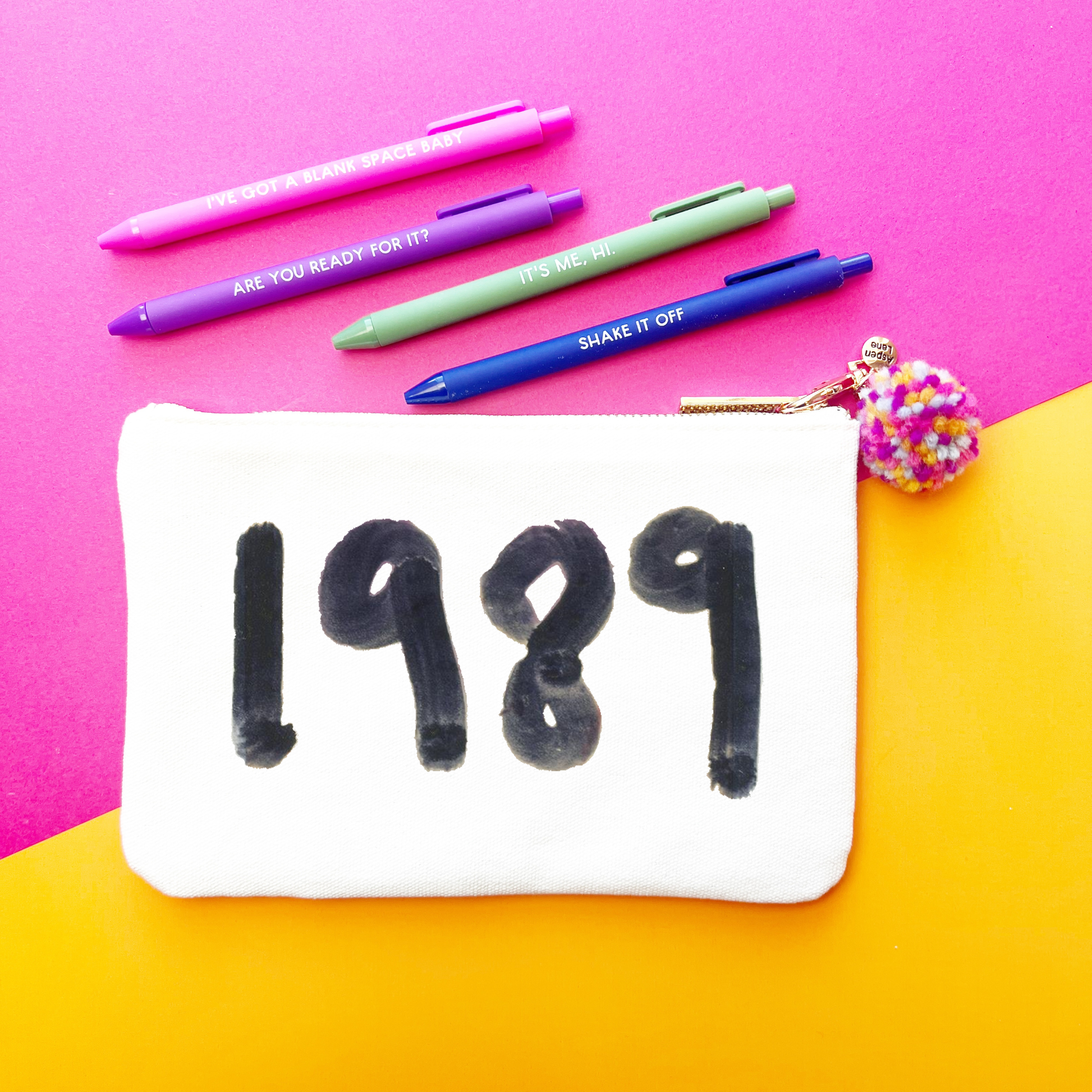 Swiftie gifts continue with our 1989 gift bag! 6x9 canvas gift pouch cosmetic bag perfect for Taylor Swift fans . Coordinates with our pen sets as well!
