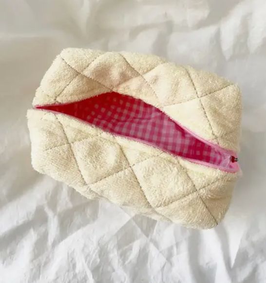 Terry quilted fabric cosmetic bag toiletry travel pouch Regular size: 7"x4.5"x3.5" Gingham lining