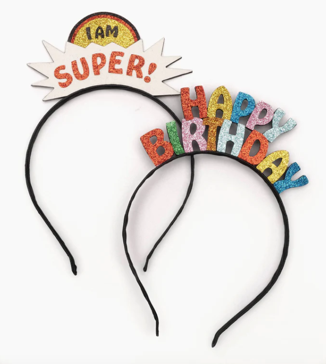 We’re big believers in the birthday kid having their own special moment—why not make their day with a sparkling crown?! This set of two headbands is perfect for showing off the celebratory spirit in THE MOST fun way. The comfy black headbands are topped with glittery messages: “Happy Birthday” and “I Am Super.” Plus, you just know these will look super cute in all the pics!