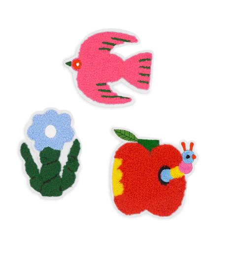 Take your sticker game to a whole new fuzzy level. Made with a textured chenille fabric, this set includes a bird, flower, and cute little worm apple.