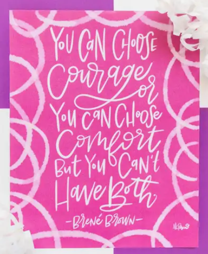Courage is bigger than brave; it's a choice to be courageous even in the face of fear. You'll never regret stepping in to your light. This 8" x 10" art print features my signature hand lettering and original design printed on 85# 100% recycled cardstock.