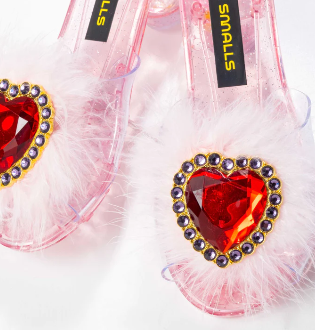 The shoes that’ll set your heart aflutter, the Daydream Queen Play Shoes are ready for their dress-up debut! Featuring a glitter design, oversized red heart jewel, feather accents, and pearls and gems inside the heels (make music while you walk!), they’ll inspire pretty in pink playtime daydreams.