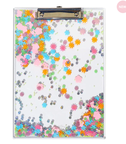 Make your to-do list and notes feel like a party thanks to this clear confetti-filled clipboard we designed! With our colorful Flower Shop confetti and luxe silver hardware too, this desk accessory is the perfect something sure to inspire.