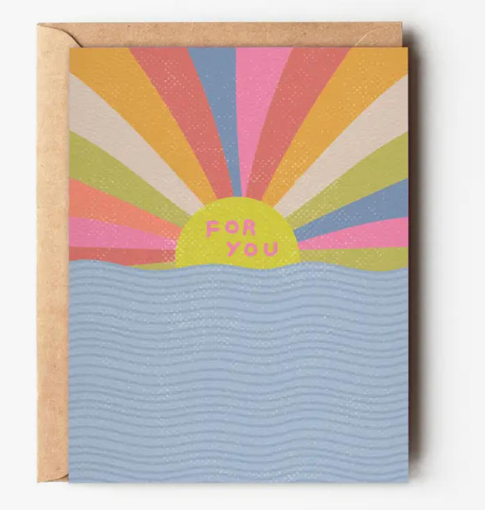 This colorful everyday card is a versatile one. It can be a great birthday card, anniversary card, just because card. the rainbow sunset art has a beach vibe. A must-have card for coastal stores.
