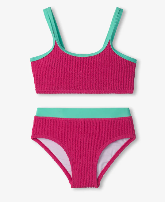 Add a pop of color to her summer with the Girls Fuchsia Purple Bikini Set! This vibrant two-piece combines style and comfort, perfect for beach days and poolside fun. She’ll love the fit, and you’ll love the durability!