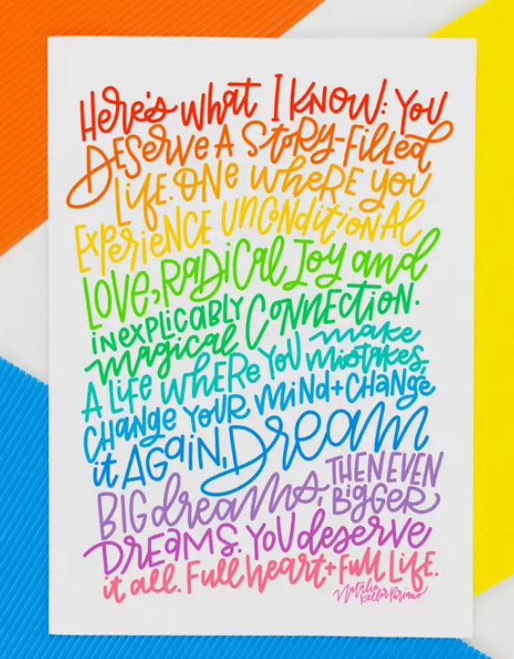 You, my love, deserve all of it. Every single ounce of the human experience. This 8" x 10" art print features my signature hand lettering and original design printed on 85# 100% recycled cardstock.