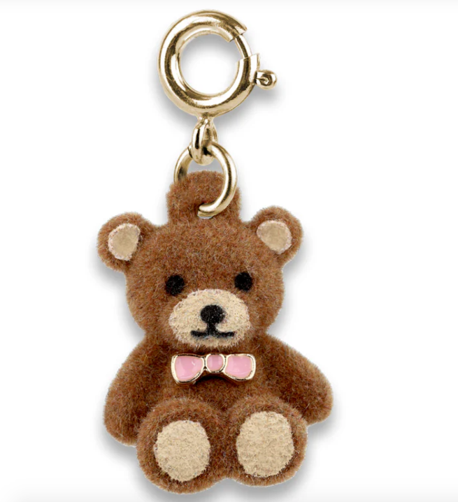 From bow tie to heart tail, it's always snuggle time with this Gold Fuzzy Bear charm!