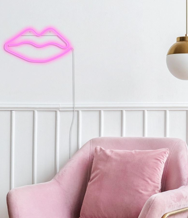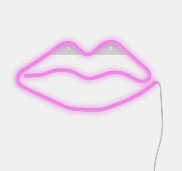 LED neon-style light in the shape of a pair of lips adds a pink glow to any room in your home!