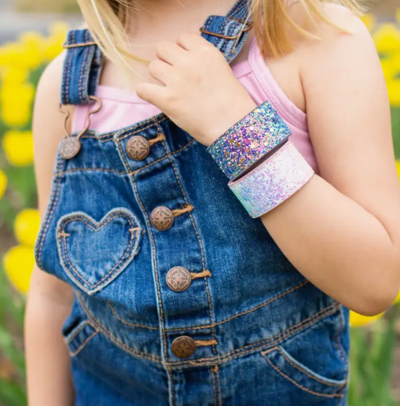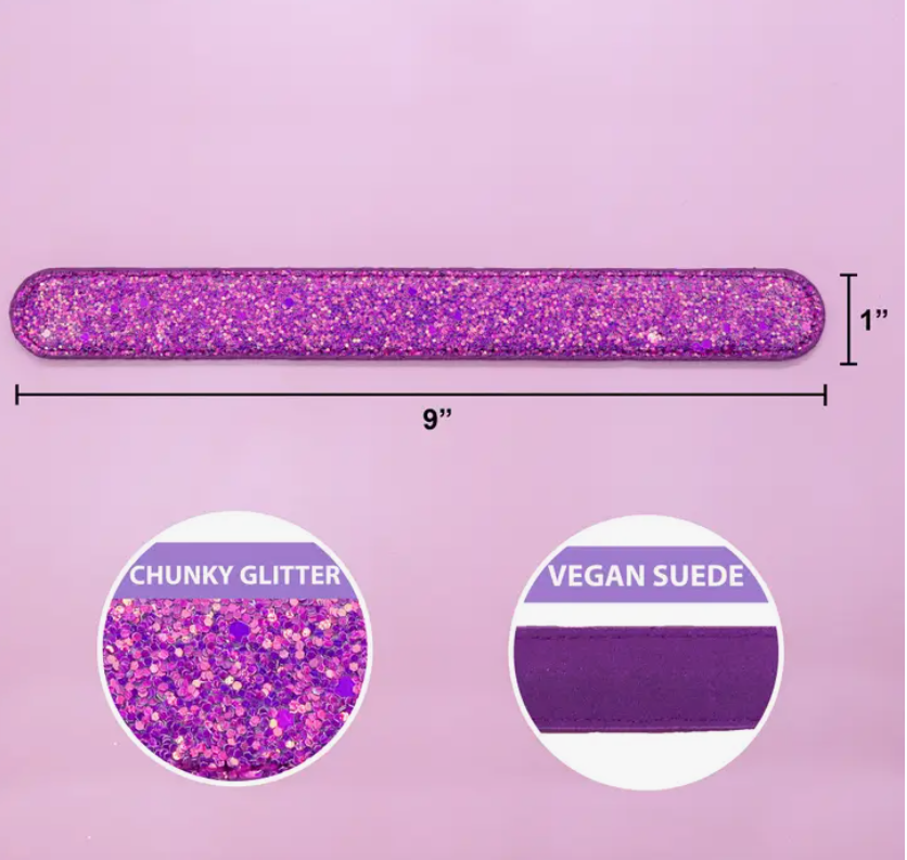 * made with sparkly chunky glitter and soft vegan suede for a comfortable feel * 9" length and 1" width * best fits kids to teens * cpsc compliant - safe for children