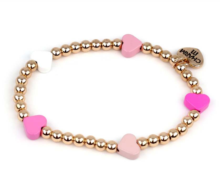 This Gold Bead Pink Heart Stretch Bracelet is full of sweet hearts that yours is sure to adore!