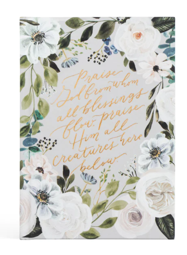 Inspired by the natural eucalyptus and blooms of Victoria, Australia, we are so excited to offer this beautiful floral notebook that matches our refreshed Victoria Bible! Delicate gold script covers the front and back covers with the beloved Doxology, “Praise God from whom all blessings flow. Praise him all creatures here below. Praise him above ye heavenly hosts. Praise Father, Son, and Holy Ghost.” These cherished words ring out true in our lives—may we remember this truth as we cling to our communion with our Savior!