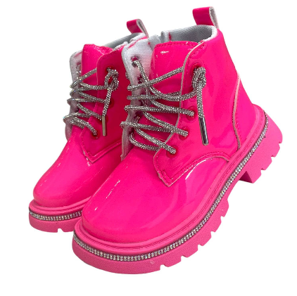 - These boots feature a vibrant hot pink finish embellished with sparkling crystals, perfect for adding a touch of glamour to any outfit.