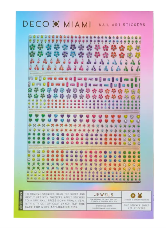 Nail art just got way easier. These tiny stickers were made to be easy to remove from their sheets and press right onto your nails. They can be applied to gelled, polishes, or natural nails, just make sure that whatever surface you're putting them on is dry. Oh, and don't be a hero; use tweezers to remove stickers from sheets. They are thin, so take your time and be gentle. Application directions and tips are printed on the back of packaging if you need additional guidance. For best results, use a thick top coat (deco's gel effect plumping top coat was specifically designed in mind for this job) to seal the sticker on your nail. You may need to put an extra coat overtop of gold metallic stickers.