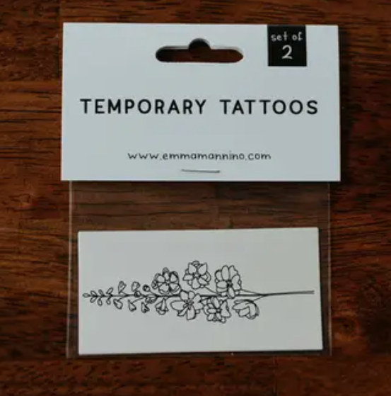 Birth flower collection Delphinium is the birth flower for july Set of 2 temporary tattoos. Approximate size of tattoo: 3 inch x 1.5 inch Application directions: place the tattoo face down on skin. Apply even pressure to the tattoo paper backing using a wet cloth. Wait a minimum of 60 seconds and then remove the cloth and gently slide off the paper. Full application directions are included in your package.