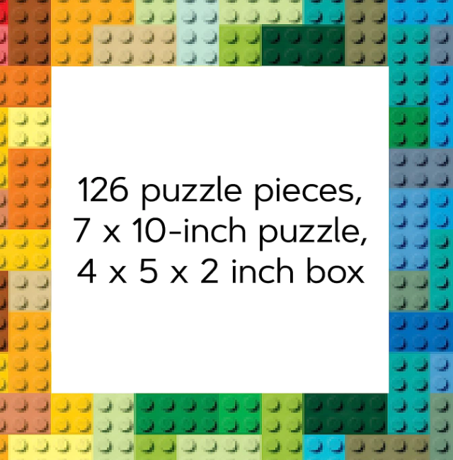 - INCLUDES: 126 puzzle pieces, 7 x 10-inch puzzle when assembled, 4 x 5 x 2 inch box.