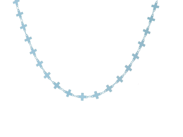 Kid's Light Blue Enamel Cross Link 14" Necklace with 3" extender