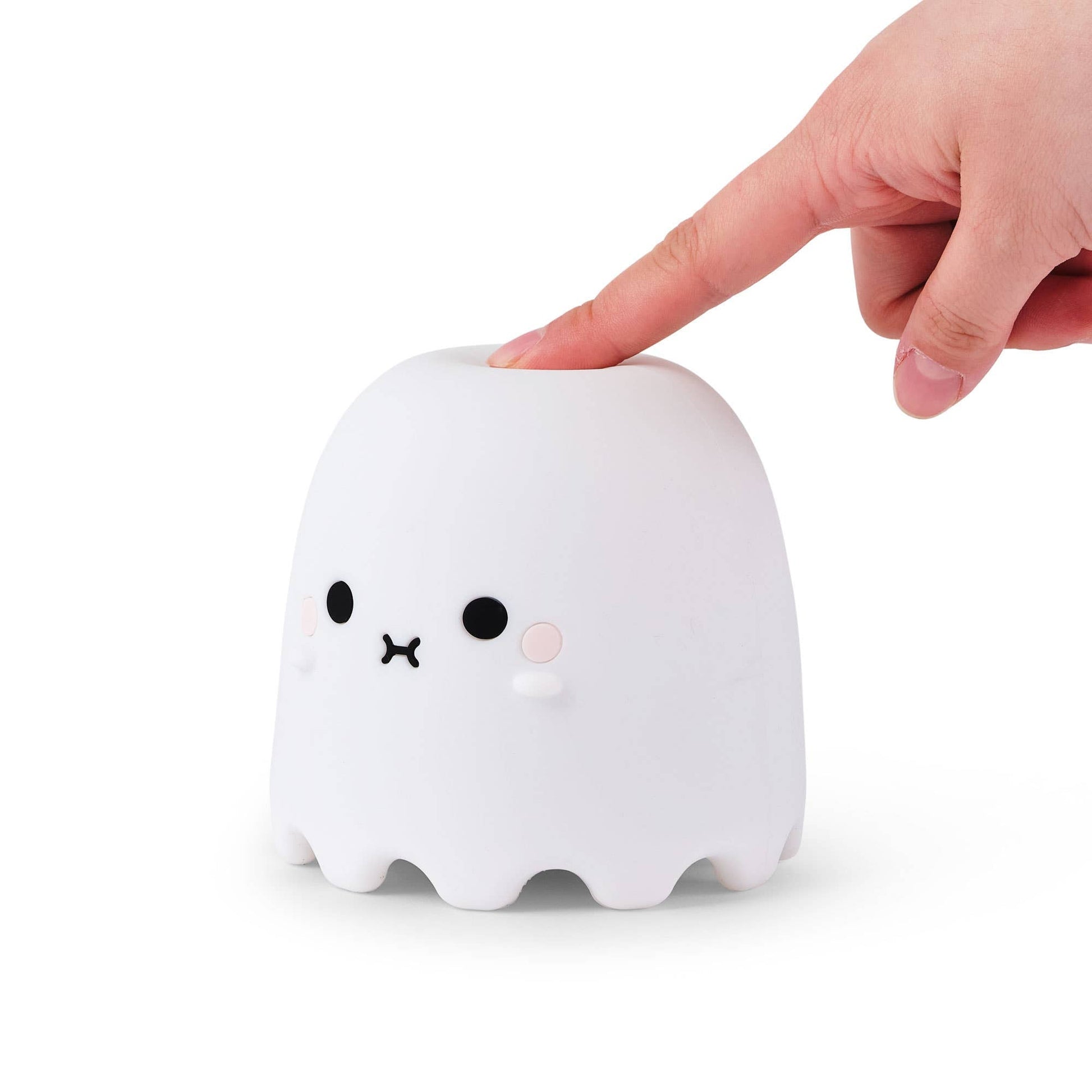 Soft, squishy ambient lights to keep you company by your side. This cute little Riceboo ghost night-light is made from BPA free, environmentally friendly silicone. Cool to the touch and with two light modes for brightness options, a playful pat on the head changes Riceboo from brightly lit to softly glowing and off again.