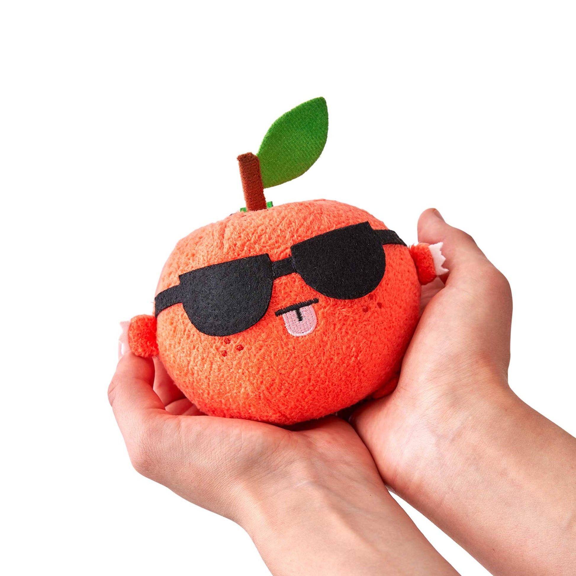 "Ricesuma is the cool orange who's always practising his ollies on his skateboard. This cool character has a bright neon orange body, black shades over their embroidered face, and a handy velcro strap to hang on to anywhere you might need a pal.