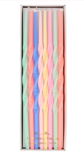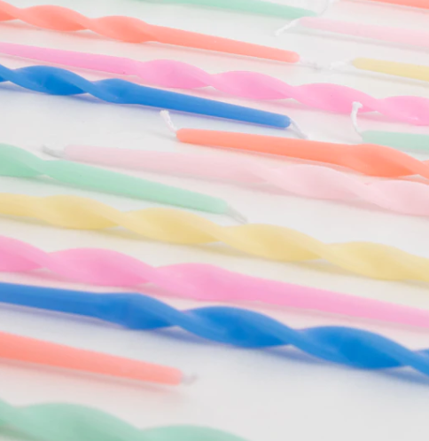 These tall candles, in a mix of bright colors, will add a sensational effect to any celebratory cake. They are twisted for a statement look too.