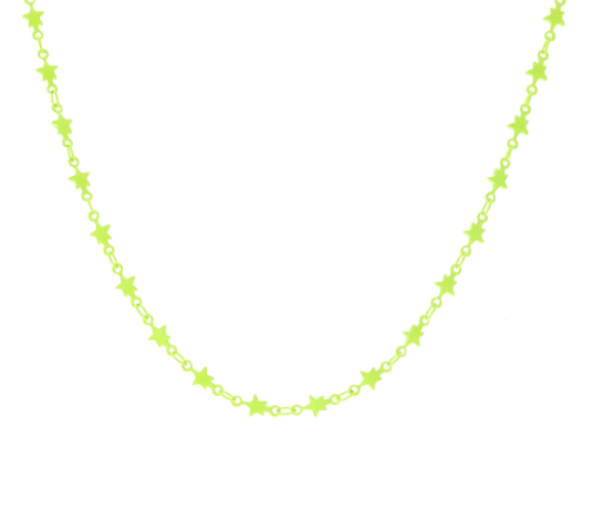 Kid's Neon Yellow Enamel Star Link 14" Necklace with 3" extender