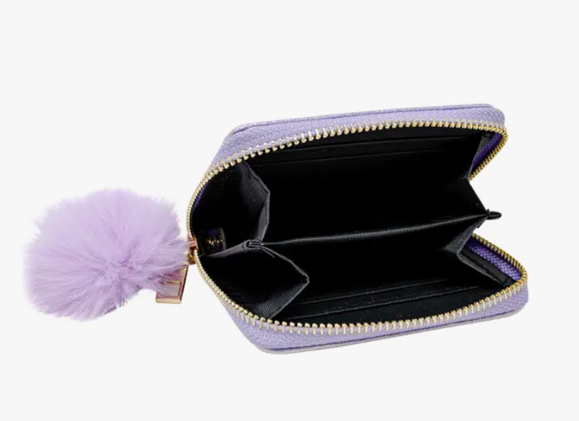 This canvas checker wallet features a full zip closure and removable pom pom. It's the perfect size for little ones to use as a fun change coin purse or to stash their allowance.