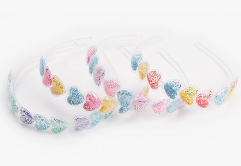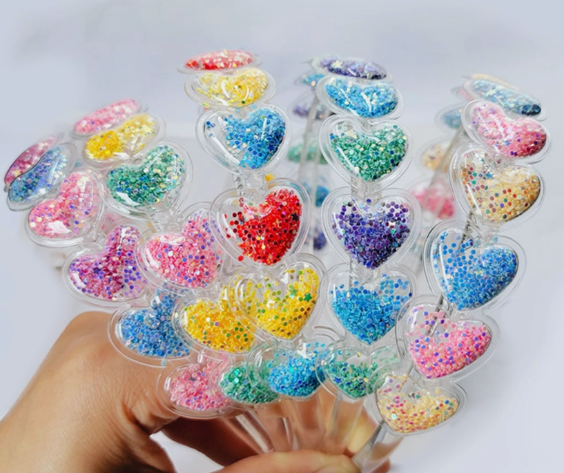 Shaker heart headbands are great for all ages. Featuring heart shapes filled with different colored glitter to bring some spunk to your hair accessories! Top selling hair accessory headband. This fits your hair perfectly!
