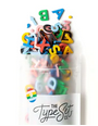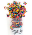 Each set includes 200 1" tall letters, numbers, symbols, and punctuation. Contain small parts. Made for ages 4 and up. Adult supervision recommended.