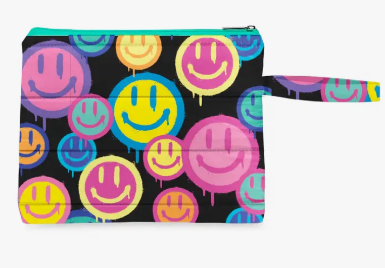 Super handy wet swimsuit bag, wet bikini bag, or laundry bag with powerful water-resistant lining. Keep wet items separated from clean, dry clothes in your luggage or beach bag. Measures: 11”w x 9”h