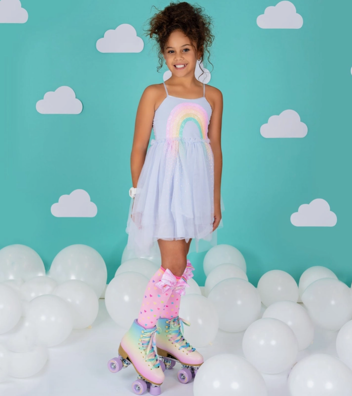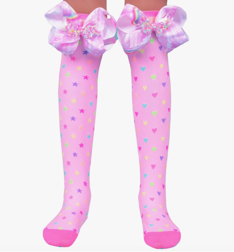 We think it's best to sprinkle a lot of colour in your life to shine like a star! These srinkle socks have and attached pink material and clear custom made bow with colourful star shaped sprinkles inside.