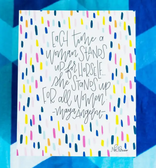 Raise your voice for yourself and you make room for the other women around you. This 8" x 10" art print features my signature hand lettering and original design printed on 85# 100% recycled cardstock.