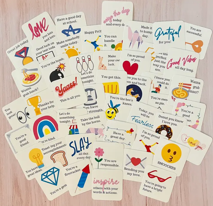 Teens and tweens need love too! When your adolescent needs an extra pick-me-up, slip one of these affirmations into their lunchbox, book bag, or agenda for a sweet and loving surprise. You get 48 notes of love and affirmation developed especially for teens and tweens. All of the designs feature a trendy image and a short, positive message to share with your child. Details: ~ 48 cards - printed on one side ~ card sizes are approximately 2.5" x 2.5 " with rounded corners