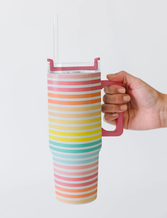 Stainless drinkware you will obsess over! Our Sunset Stripe To Go Tumbler the perfect size for on the go.