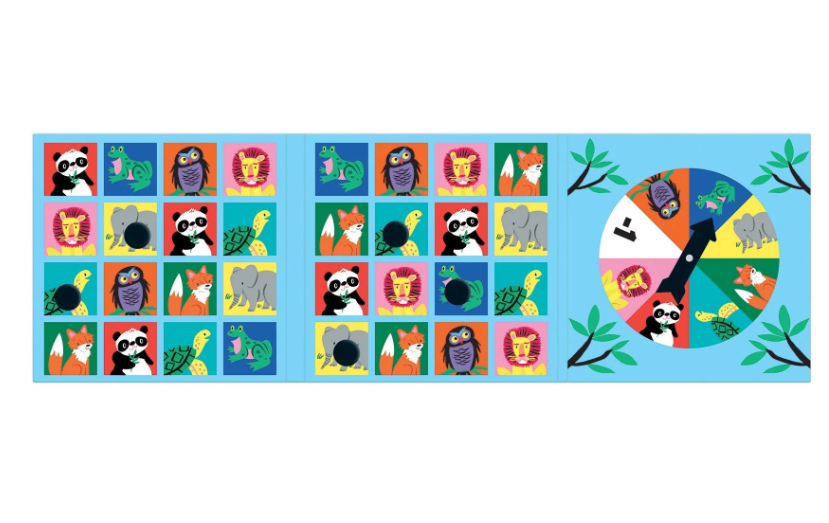 Wild Bingo Magnetic Board Game from Mudpuppy provides children with a fun and easy way to play bingo on the go with all their favorite wild animals! The magnetized tri-fold portfolio package includes a spinner, magnetic game pieces, and instructions. The game pieces stick to the magnetized portfolio so there is no slipping or lost pieces.