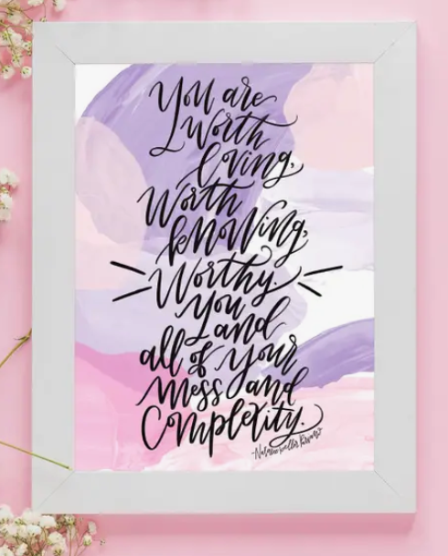 You and all of your complexity are worthy of everything you want. This 8" x 10" art print features my signature hand lettering and original design printed on 85# 100% recycled cardstock.